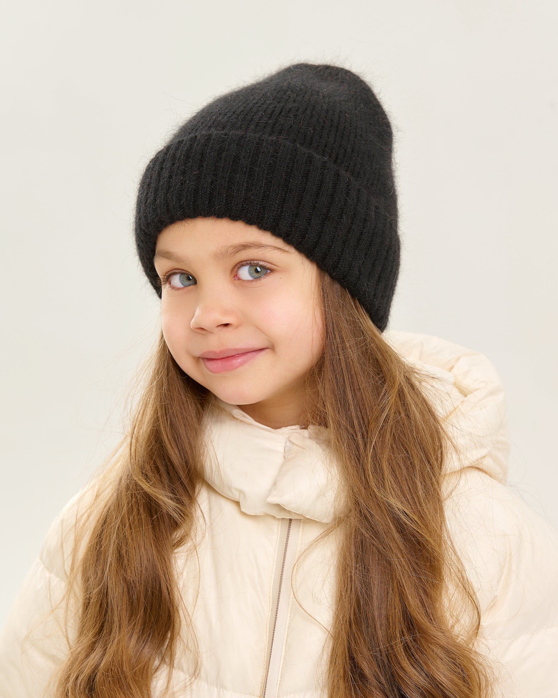 This lightweight angora hat provides gentle warmth and comfort for children in cool weather. The single knit ensures ease of everyday wear, while the angora-nylon blend adds elasticity and durability. A caring choice for a child’s comfort and parents’ peace of mind.